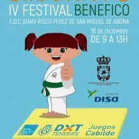 El sábado 16 de diciembre tendremos doble cita con el judo en los XXXI Juegos cabildo de Tenerife. A partir de las 9:00 horas se disputarán las pruebas correspondientes a la cuarta jornada de la competición, y a continuación podremos asistir a la cara más solidaria de este deporte, el Festival Judokitas. Las dos convocatorias se celebrarán en el Pabellón de Deportes Jonay Risco Pérez, en el municipio de San Miguel de Abona.